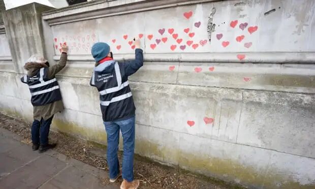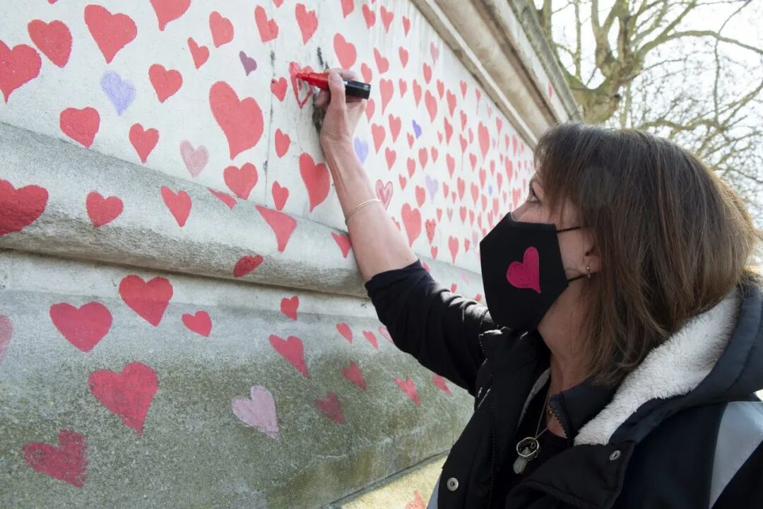 这次活动由民间运动团体"Covid-19 Bereaved Families for Justice”组织,于2021年3月29日首次开始绘制,计划为英国因新冠疫情去世者每人准备一颗心。
