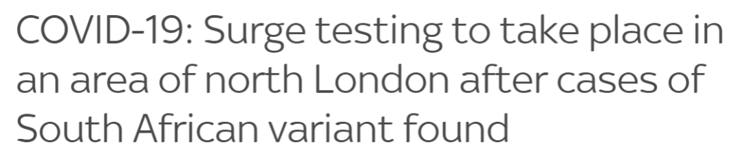 在伦敦北部的一个地区检测到新冠南非变种病例后,将在该地区进行紧急快速测试。