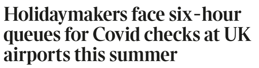 英国官员警告说,自5月17日起放宽国际旅行规定后,抵达英国的度假者将面临6个多小时的排队等候入境。