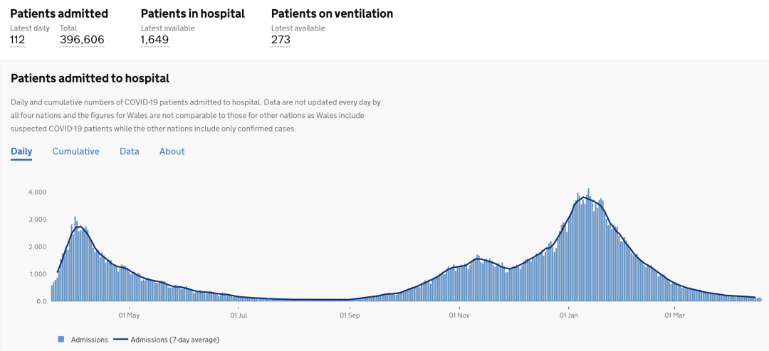 但是根据目前的数据显示:自9月以来,英国政府的数据在近日首次显示新冠住院病人少于2,000人。