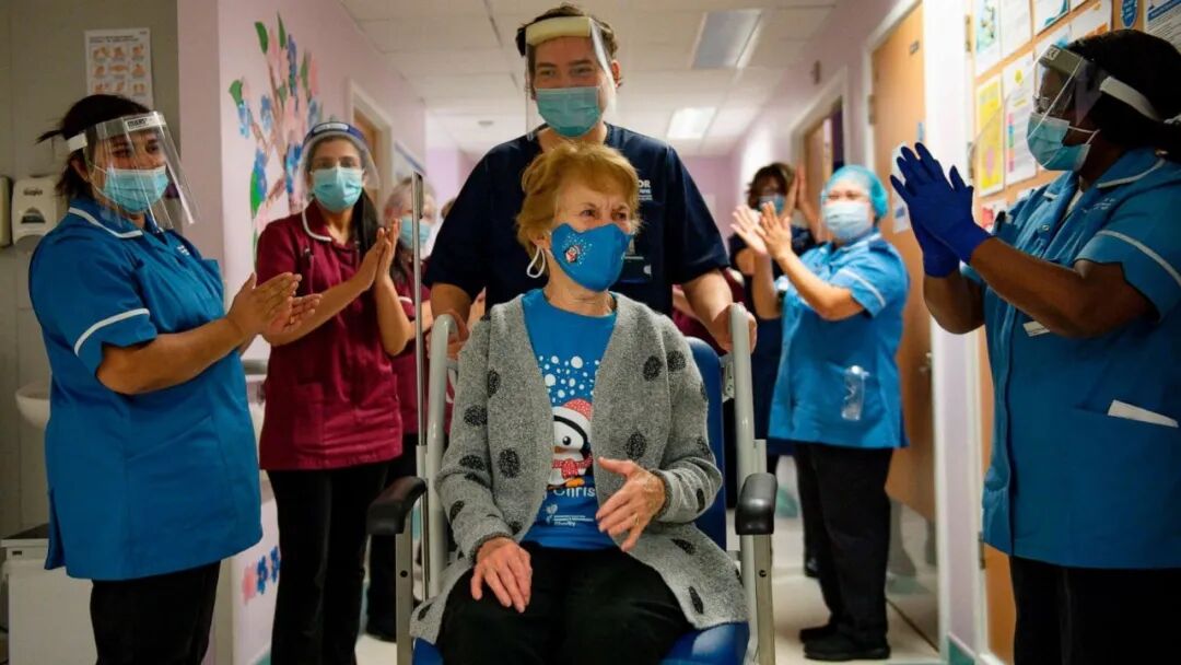 英国首个接种疫苗的老人|图片来源SHUTTERSTOCK