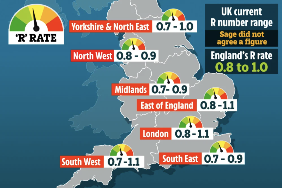 虽然传染率微回升,但在过去的几周里,英国政府科学咨询团队Sage却一直无法给出整个英国的比率。该团队表示,由于日增确诊病例数太低,误差会变得更大。