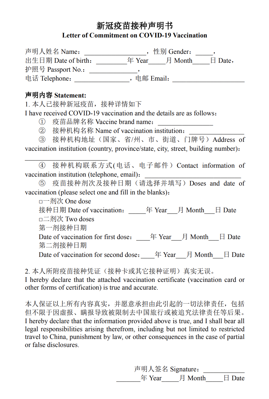 1.下载《新冠疫苗接种声明书》,如实填写并手写签署。
