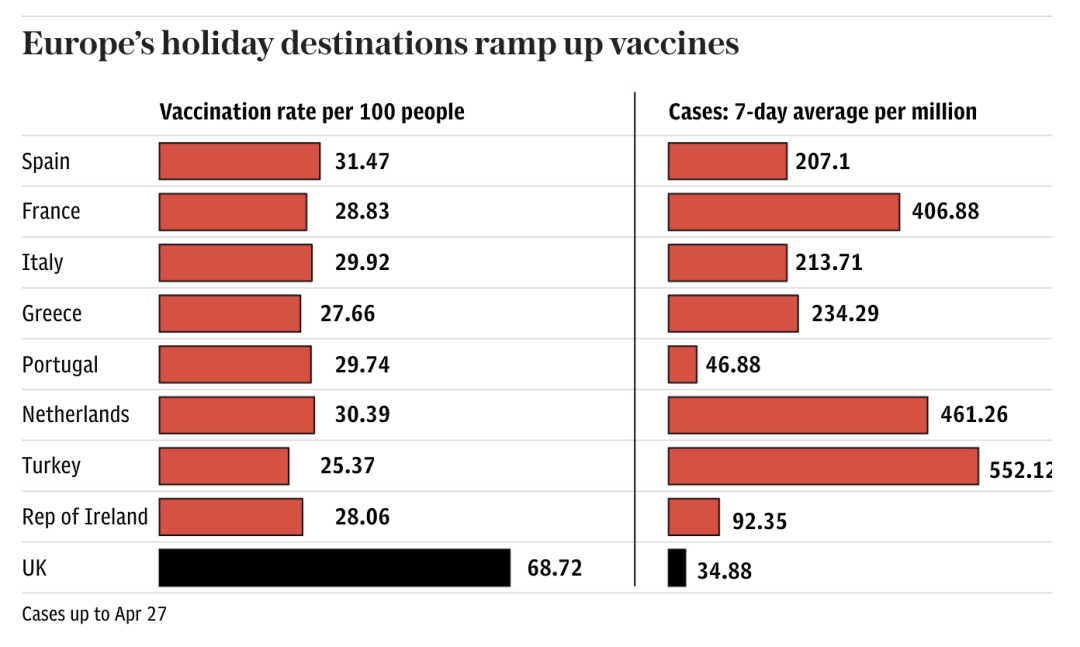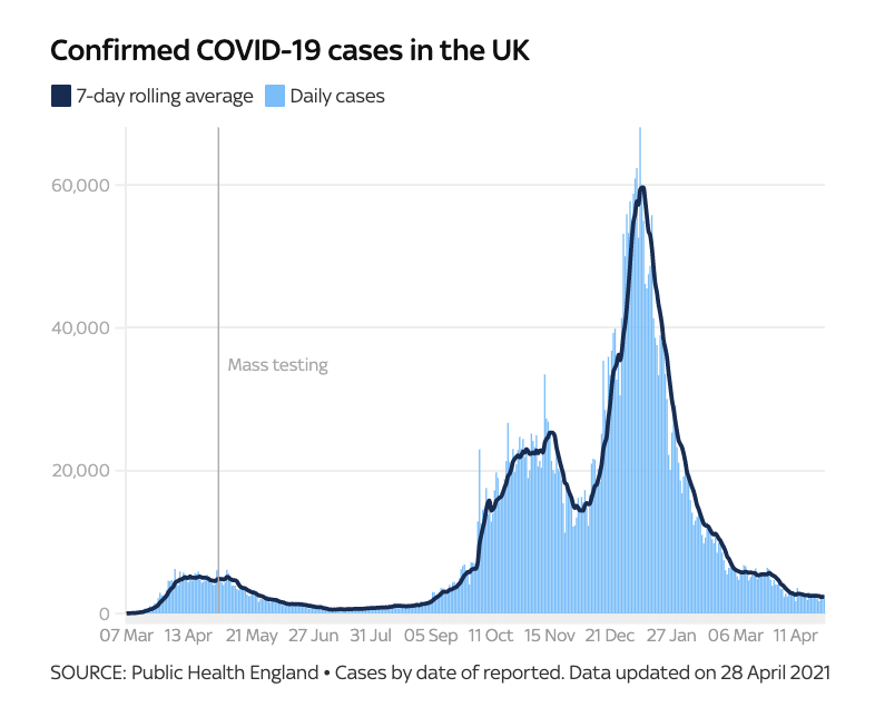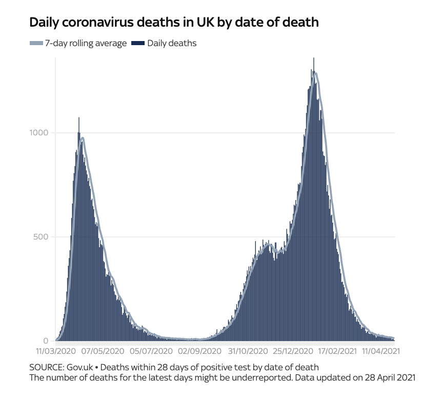 官方表示:根据科学模型结果,英国将出现第三波疫情,但按照目前接种疫苗的速度和计划推广来看,第三波疫情将会小得多并且非常可控。