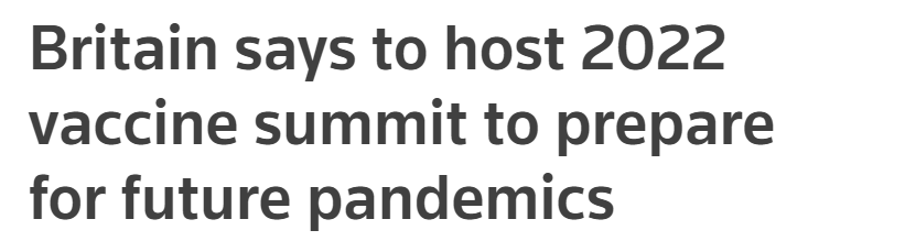 英国表示,明年与防疫创新联盟(CEPI)举行的峰会将支持该目标,即在未来的大流行中将新疫苗的研制时间缩短到100天。