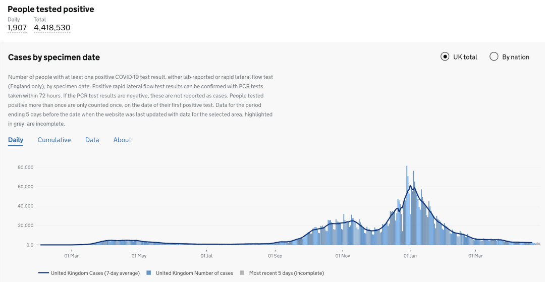 英国日增确诊案例趋势图