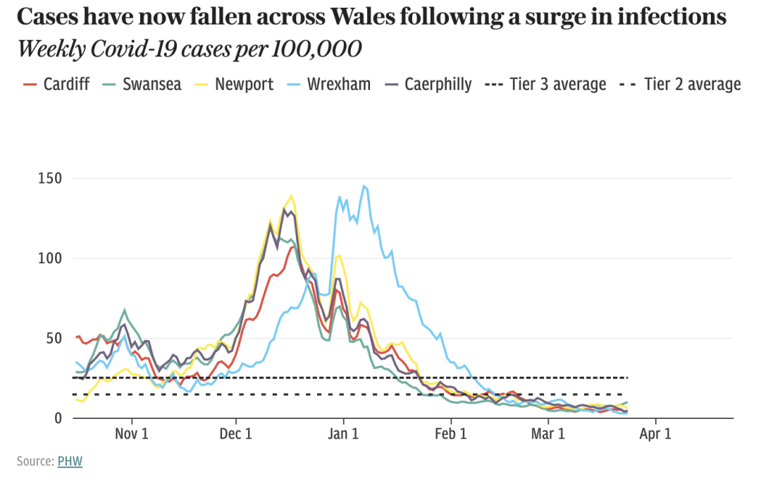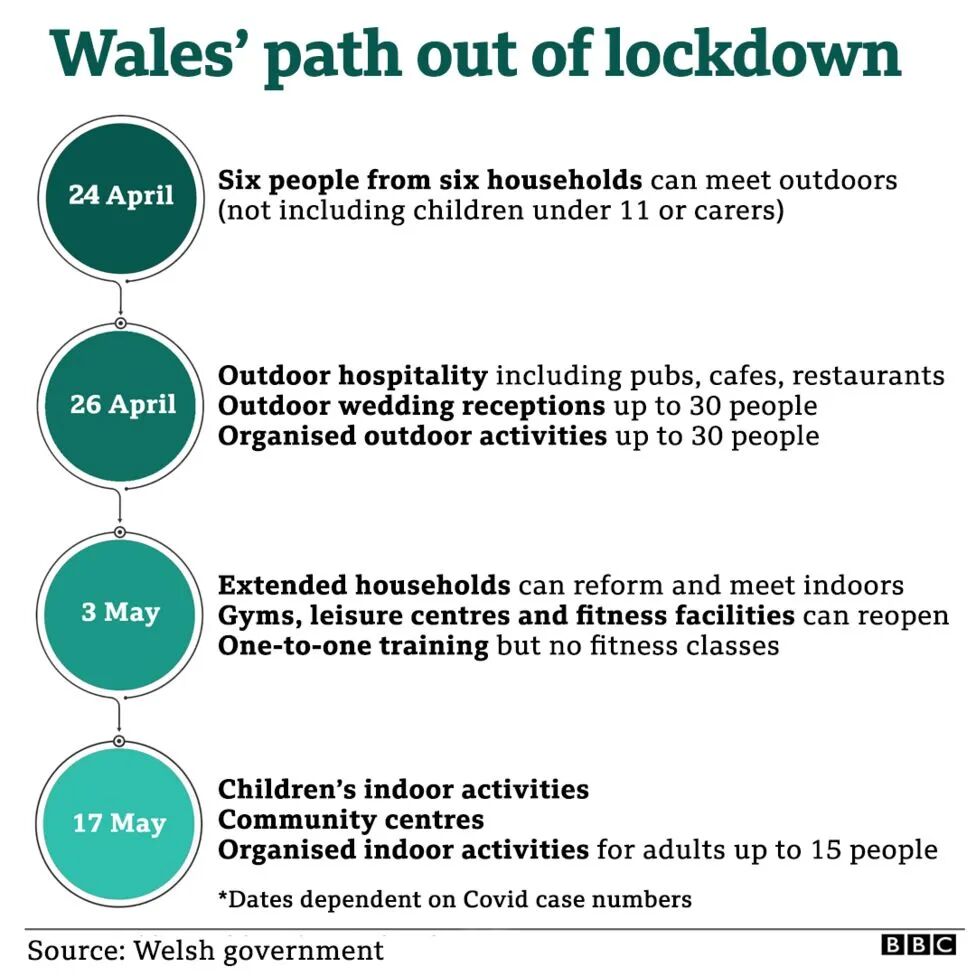 在4月下旬威尔士当地酒吧、餐厅、咖啡馆和其他服务业允许再次提供户外服务后,从5月3日(周一)开始,威尔士提前进入下一步解封计划:当地健身房,休闲中心,游泳馆等正在重新开放。