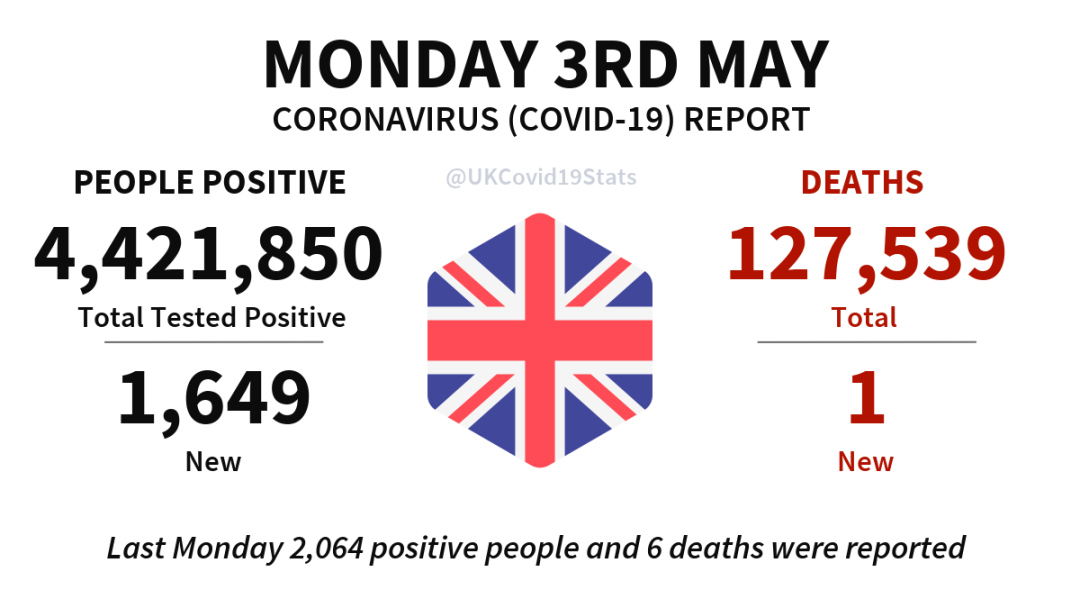 *今日英国数据更新由于节假日原因官方延后,因此我们会在5月4日推送中恢复更新各地区数据。