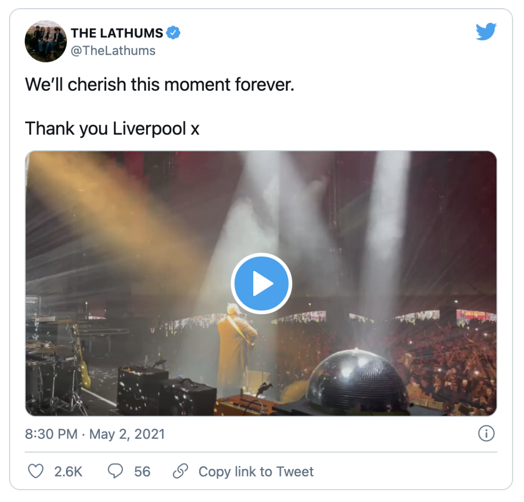 5月2日(周日),约有5,000人挤在利物浦的塞夫顿公园Sefton Park,参加了英国政府举办的新冠试点大型户外演出活动,表演者包括Blossoms、The Lathums和利物浦歌手Zuzu。