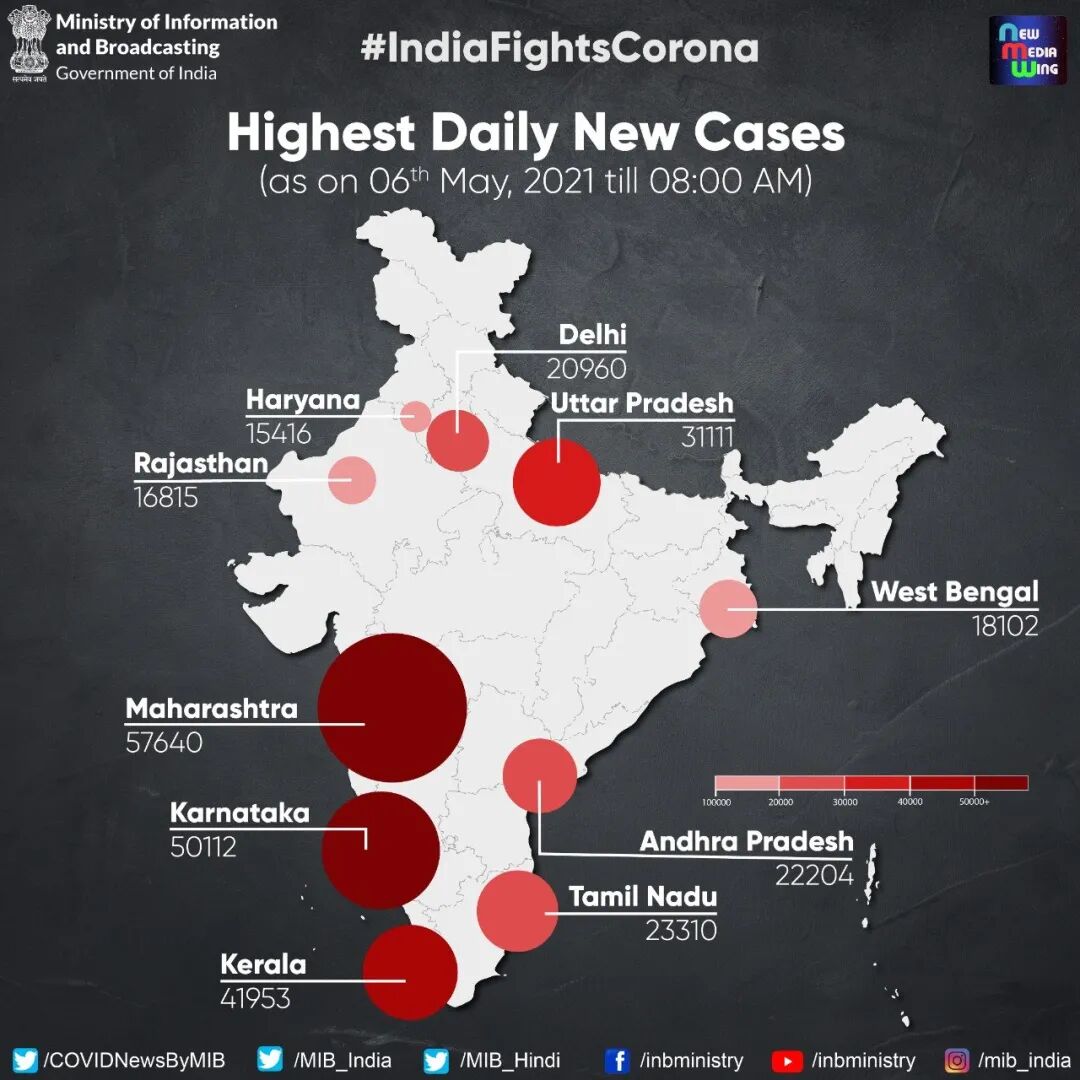 在过去的24小时内,印度官方报告的日增死亡人数再次破纪录——达到3,980人,这也使印度累积新冠死亡人数超过了23万人。另外,新增确诊同样创纪录增加了超过41万例。