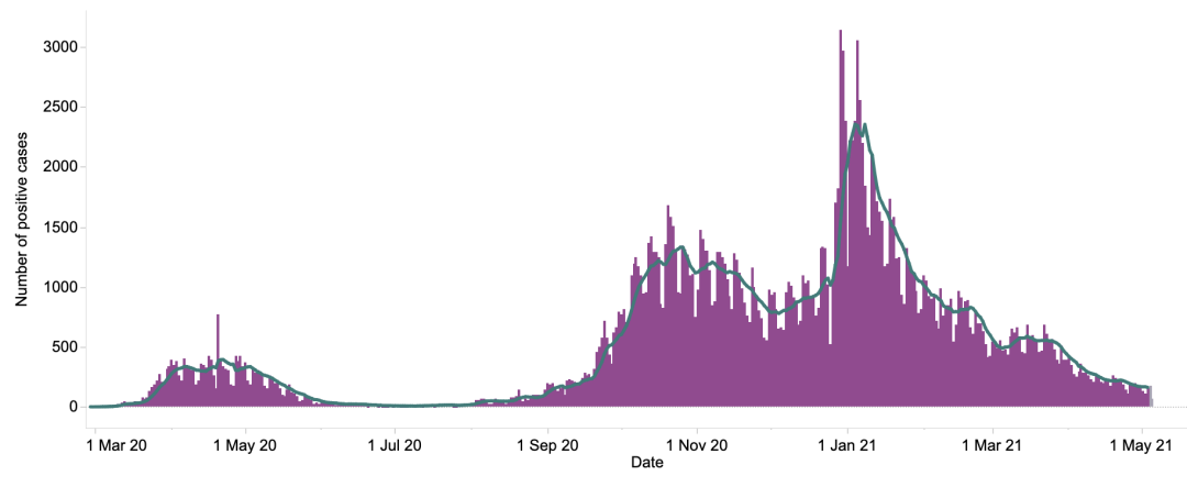 截止至2021年5月6日(周四)英国时间09:00,累计检测结果量158,363,333次(+1,214,689);累计确诊4,428,553例(+2,613);累计病亡127,583例(+13)。