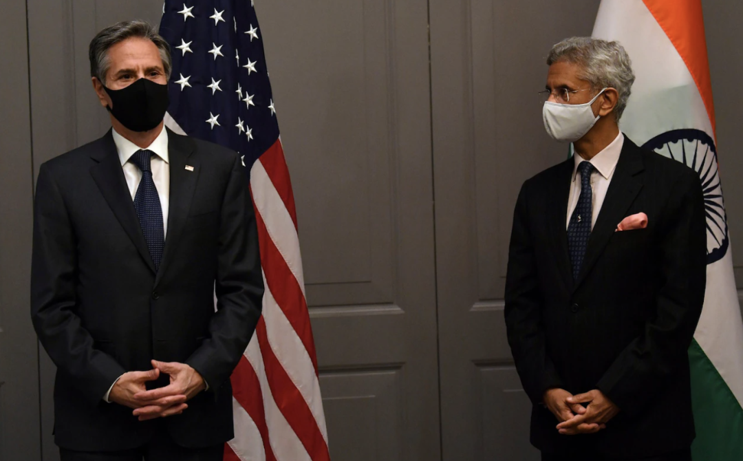 据悉,印度外长Subrahmanyam Jaishankar(已接种两剂疫苗)和他的团队在本周周一抵达不久后,就会见了美国新任国务卿Antony Blinken,两名人士合了照。