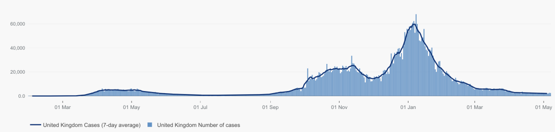 英国日增确诊案例趋势图