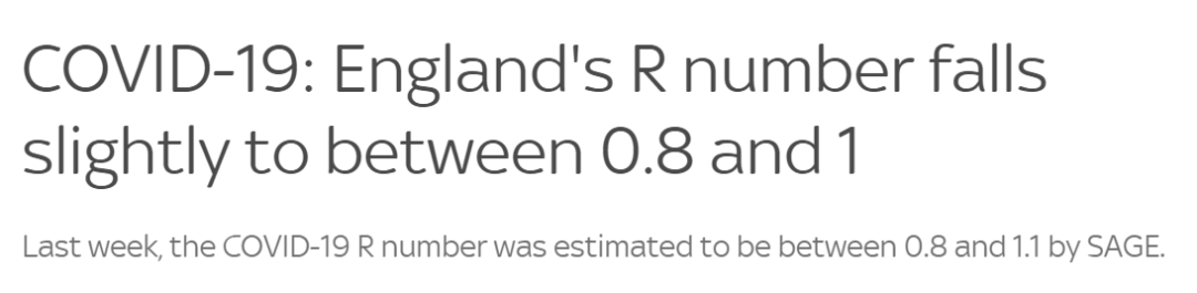 最新数据显示,英格兰的R值已略微下降到0.8到1之间。与上周SAGE的预计值一致。这意味着,每10个感染新冠的人就会传染其他8到10个人。