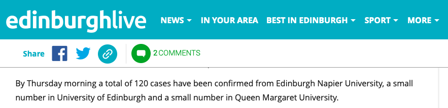 爱丁堡大学确认已有确诊病例,尚未公布具体数字和情况。