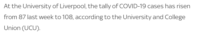 利物浦大学目前确诊病例已上升至108例,但还没有具体声明这些确诊病例的具体原因。