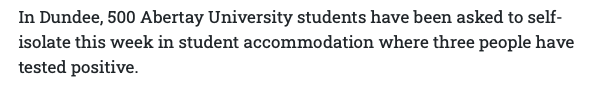 • Dundee 邓迪大学 - 无确诊/500名学生隔离