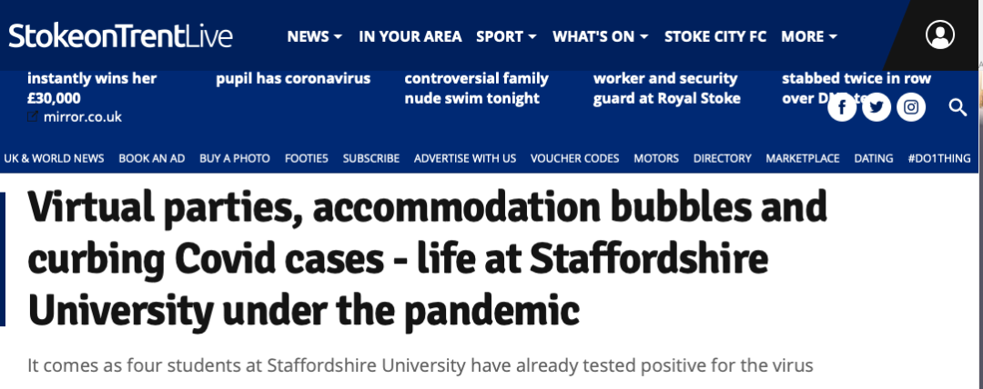 索尔福德大学通过自己的测试和跟踪系统检测出该校学生中的20例确诊。