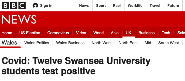 斯旺西大学的12名学生确诊感染新冠病毒。随后又增加了9例确诊。有关负责人没有透露这些病例是如何进行检测的,也没有透露这些病例是否有关联。