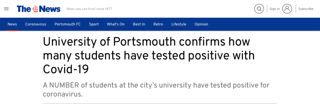朴茨茅斯大学证实,有13名学生Covid-19检测呈阳性,其中12例来自该大学自己的检测项目,还有1例由政府检测确诊。