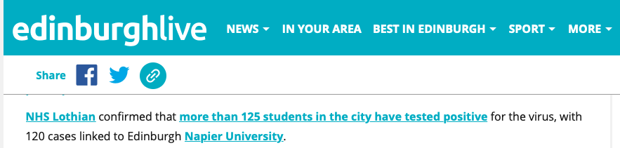 格拉斯哥卡利多尼安大学也表示在学生宿舍中发现确诊,目前还没有对该确诊的细节报道。