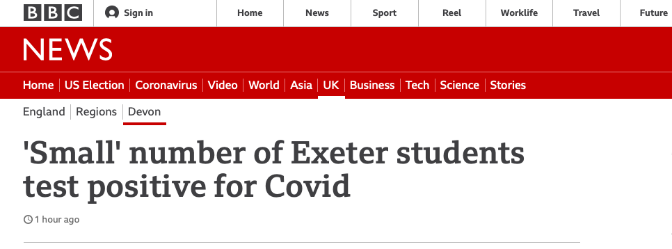 • Exeter 埃克塞特大学 - 有确诊、数字不详