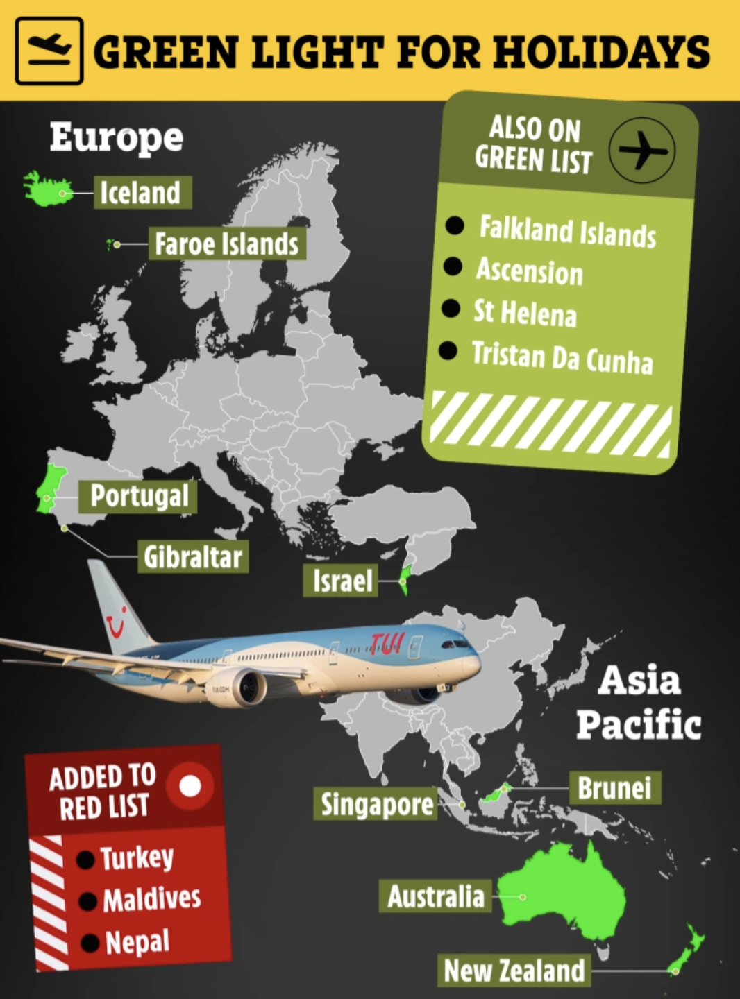 对此,旅游业的众多公司对英国政府免隔离出行的绿名单做出了回应。