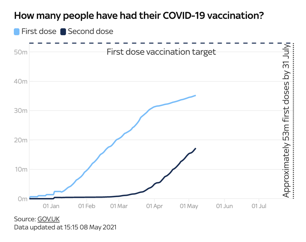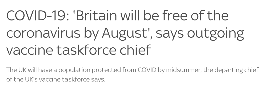 并非随口一说,他的根据是:英国的每个人将在7月底前至少接种一次疫苗,届时单剂量的疫苗以及一半以上人口的双剂量疫苗给英国群体已足够保护。他还补充说:“在即将到来的冬天,我们将是安全的。”