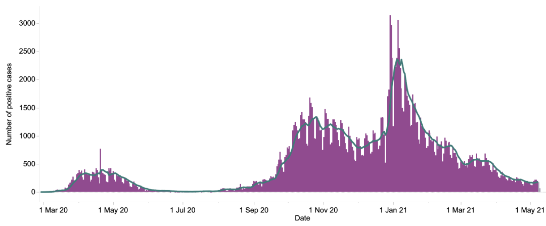 截止至2021年5月11日(周二)英国时间09:00,累计检测结果量163,345,211次(+955,467);累计确诊4,439,691例(+2,474);累计病亡127,61例(+20)。