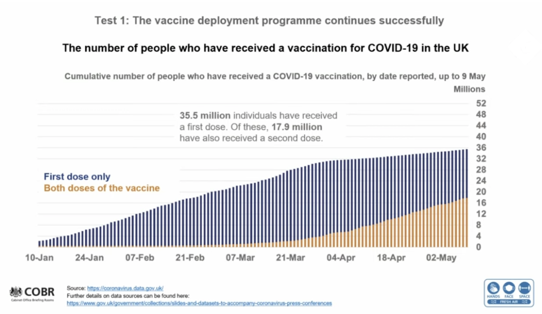 英国全境截至今日,已接种第1剂疫苗共35,587,348人(+115,053);已接种第2剂疫苗共18,088,385人(+231,835)。