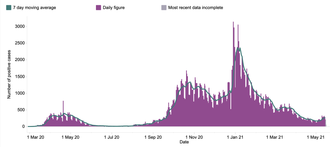 英国日增确诊案例趋势图
