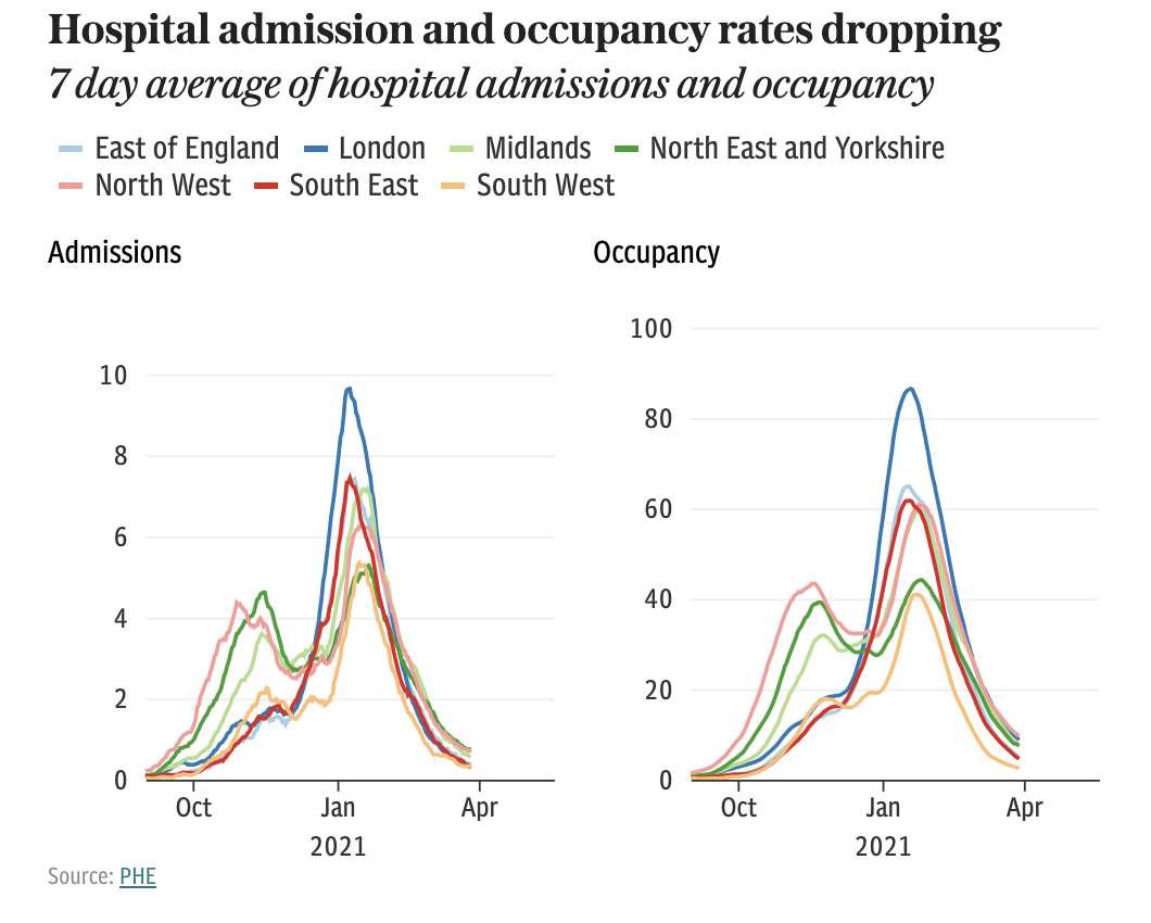 英格兰国家医疗服务系统NHS透露:截至5月17日上午8:00,共有798名新冠患者住院。据分析,这是自2020年9月13日691人以来的最低数字;同时,这也比1月18日创纪录的34,336名医院病人下降了98%。