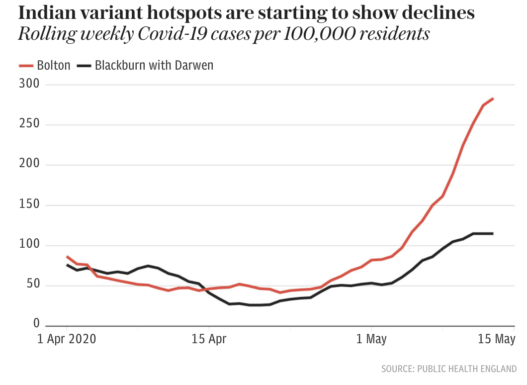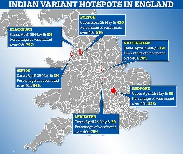 5月19日(周三),卫生部长Matt Hancock透露:截至目前已经发现了2,967例B1617.2印度变种,比周一宣布的2,323例增加了近28%。