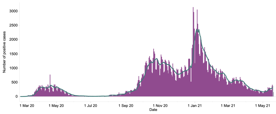 截止至2021年5月22日(周六)英国时间09:00,累计检测结果量170,774,076次(待更新);累计确诊4,460,446例(+2,694);累计病亡127,716例(+6)。