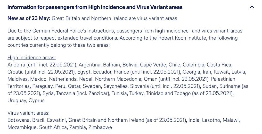 根据汉莎航空官网信息显示,由于目前英国属于「病毒变异区」,那么从「病毒变异区」出发的以下乘客,汉莎官方可以继续承运: