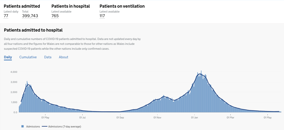 英国全境截至今日,已接种第1剂疫苗共38,192,417人(+122,379);已接种第2剂疫苗共23,228,511人(+332,955)。
