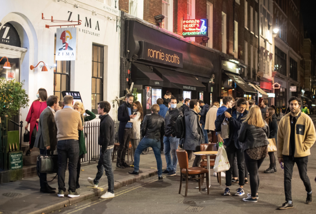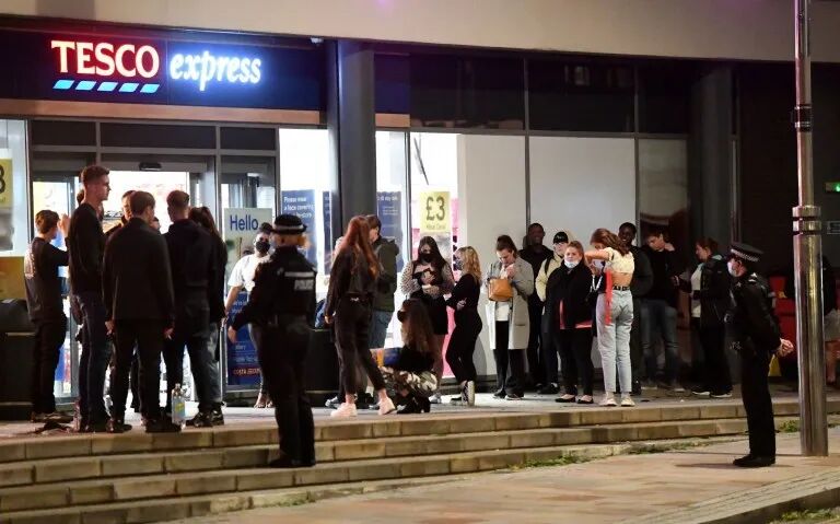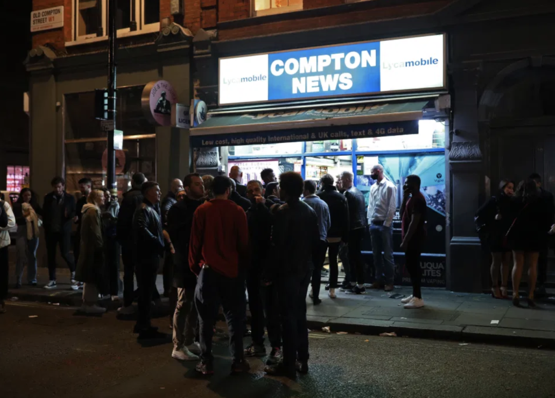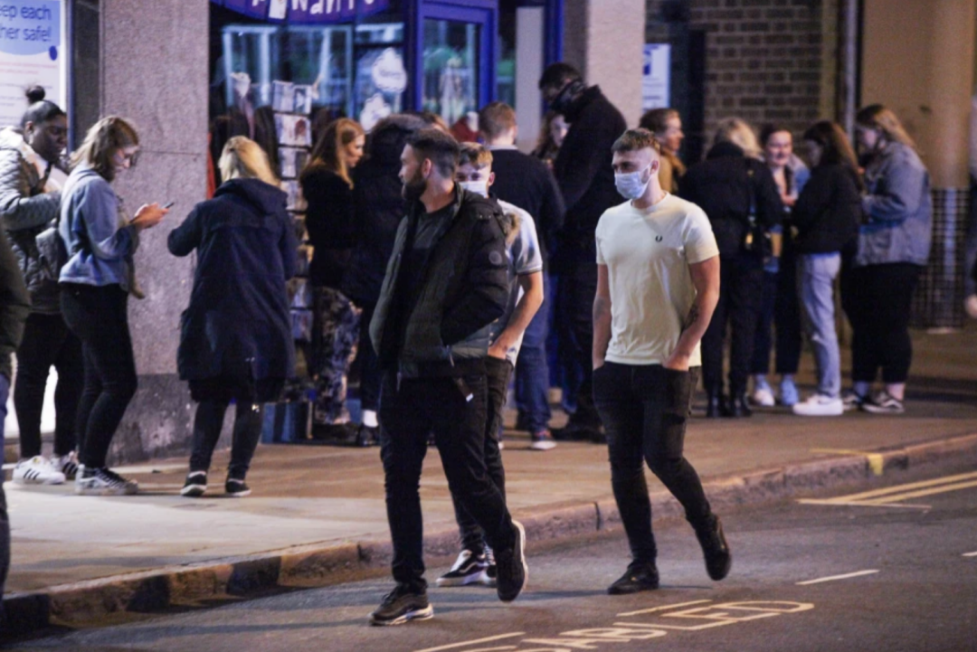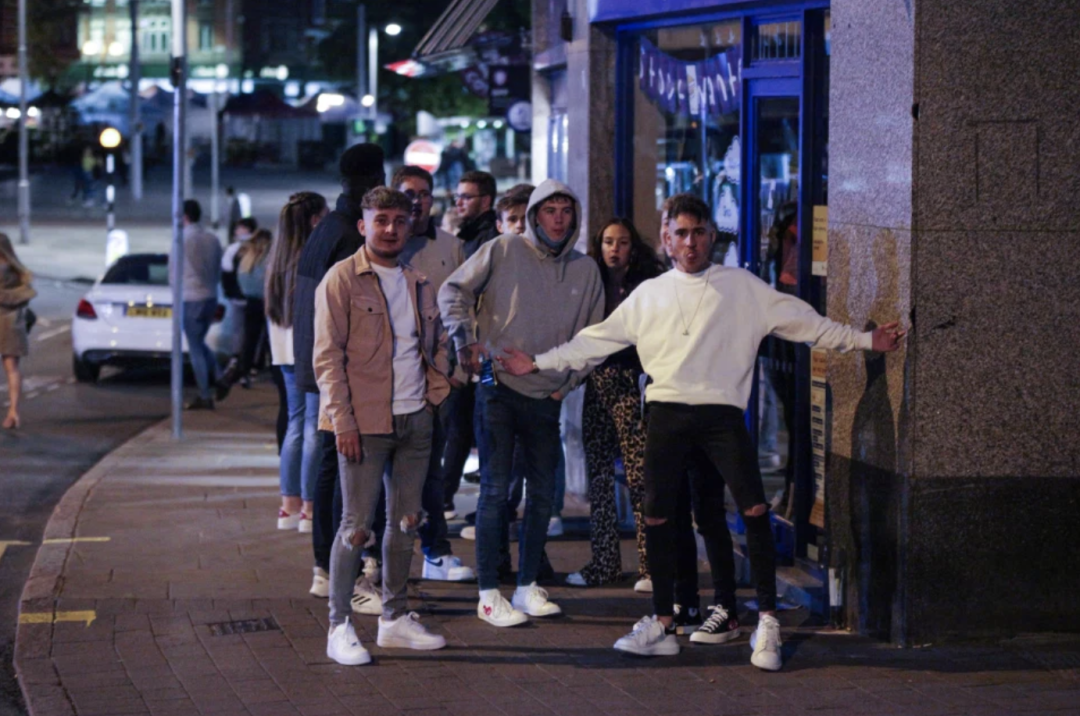 自从英国政府全英范围内实施 晚10点宵禁 以来,部分英国人绕过了宵禁规则,直接把自己的日程平行提前...早早地就开始狂欢——在10点前充分利用了酒吧和夜店,疯狂party,导致英国各地的酒吧和夜店门口出现了相当混乱的场景。