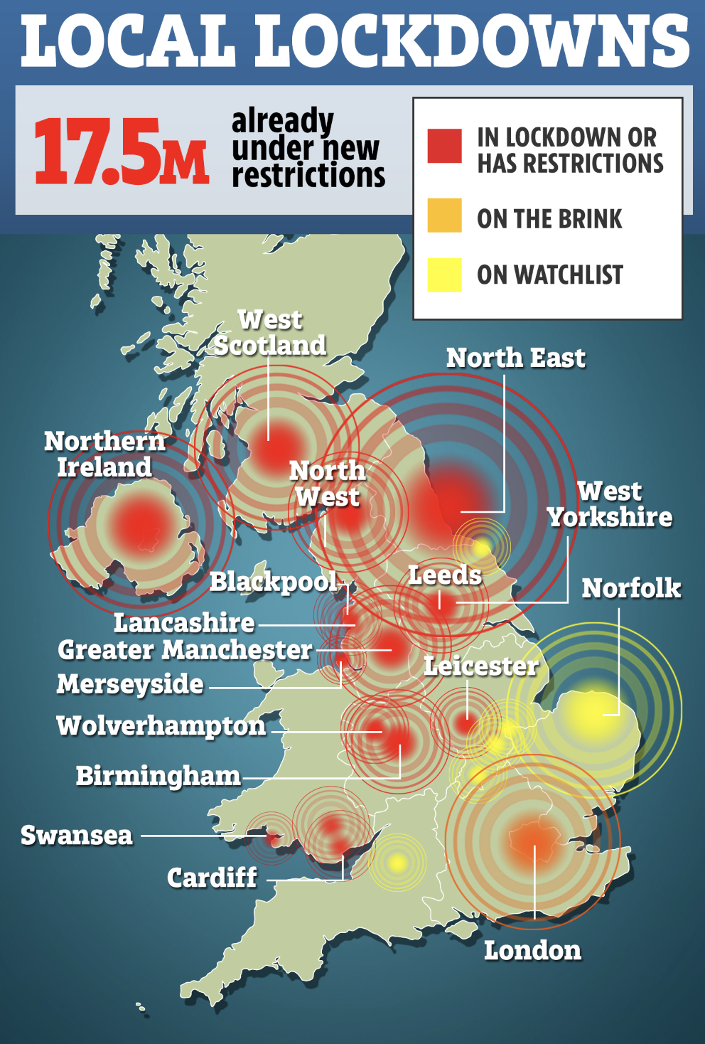 目前,英国已经有超过1,750万人所在的地区受到了局部封锁的限制。