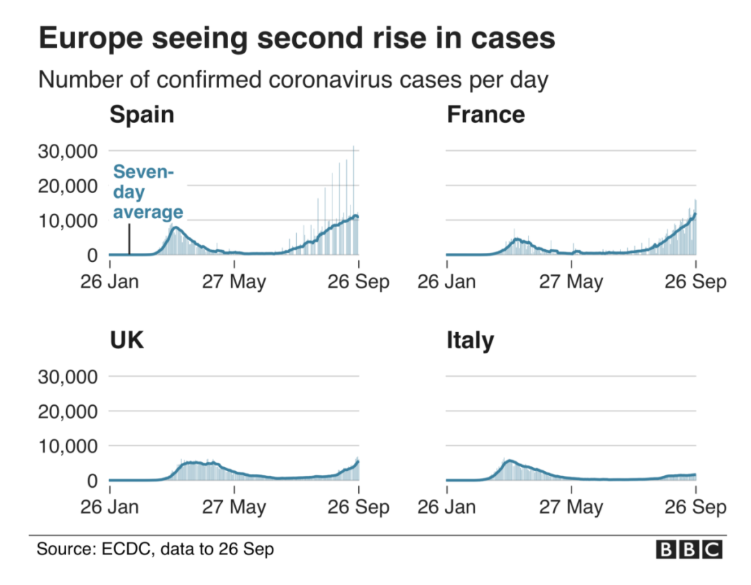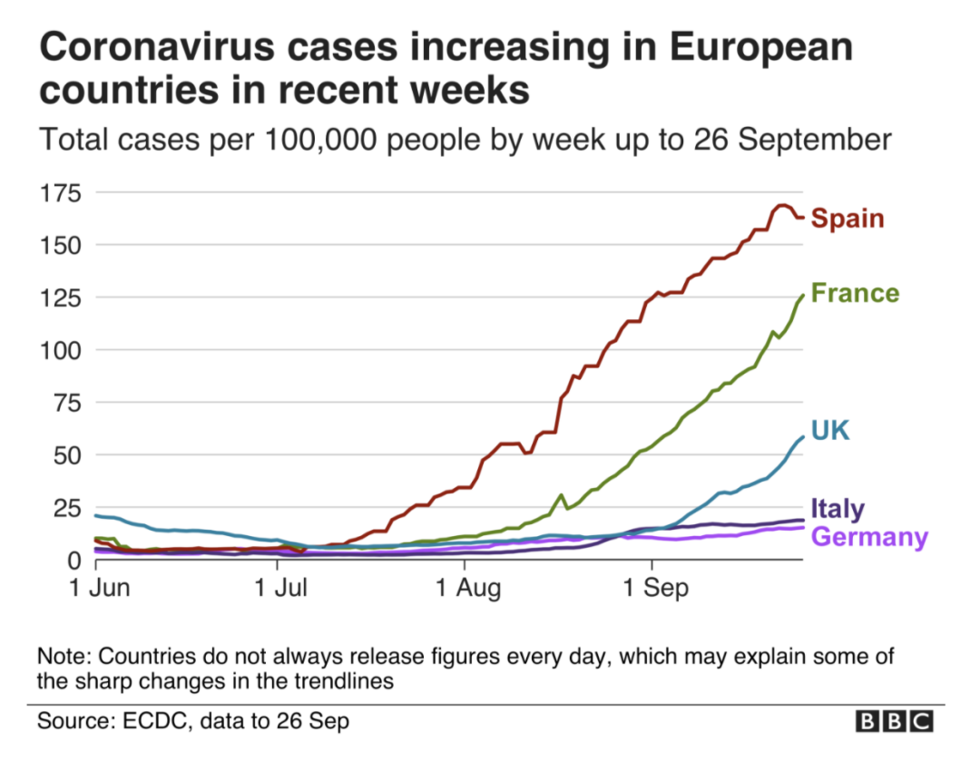 欧洲国家疫情近几周的涨势 截至9月26日