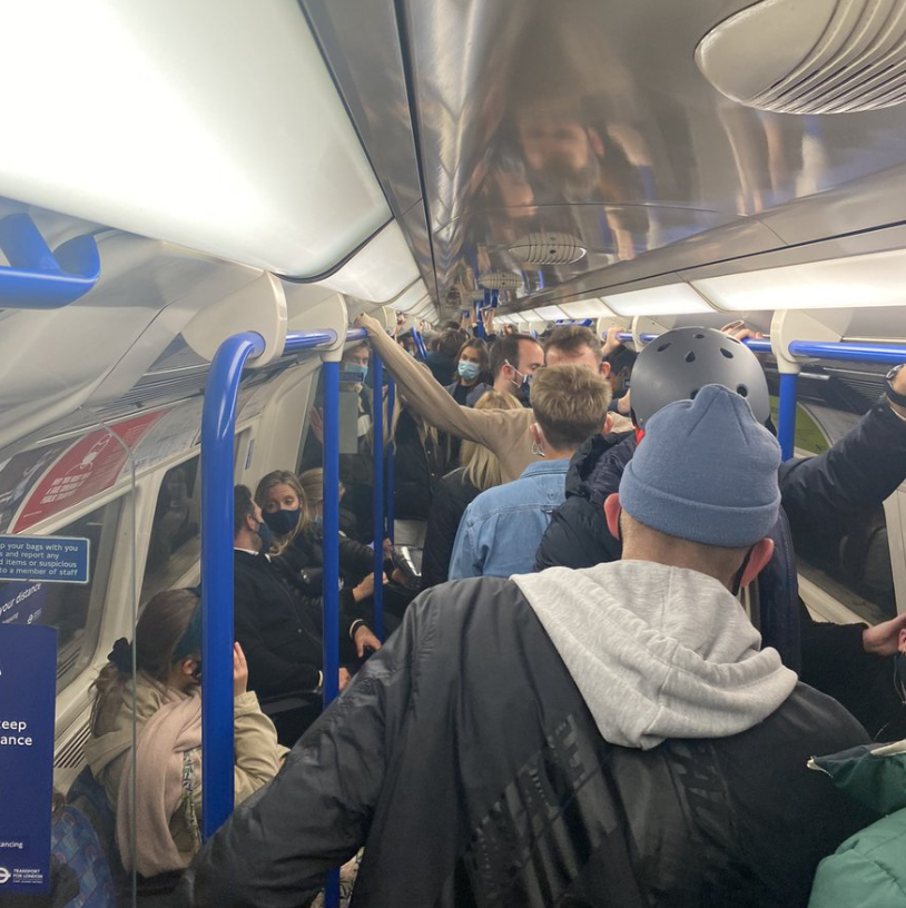 周六晚22:00后伦敦地铁车厢内|图片来源twitter