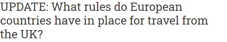 丹麦外交部将英国指定为橙色国家:从英国到丹麦的游客需要提供一个合理的旅行目的,并且必须在旅行前和到达丹麦时进行新冠测试。他们在到达丹麦后还必须进行隔离。这些限制适用于已接种疫苗的人。但那些最近康复的人可以免于测试和隔离。