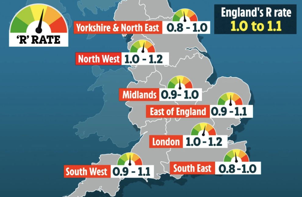 5月28日(周五),英格兰的新冠感染率R值继续上升至1-1.1之间。但在英格兰西北部和伦敦地区,R值可能高达1.2。据悉,英格兰西北部和伦敦地区都是印度变种激增的主要地区——每周这两个地区的印度变种都在翻倍。