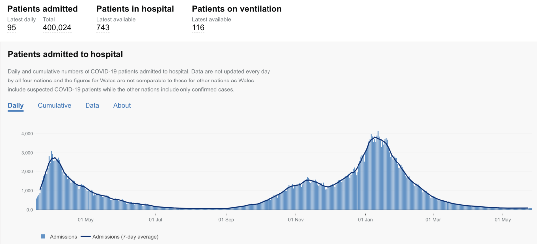 此外,目前英格兰各地入院和死亡人数仍然很低,这很明显还是归功于疫苗接种推广的顺利进行。
