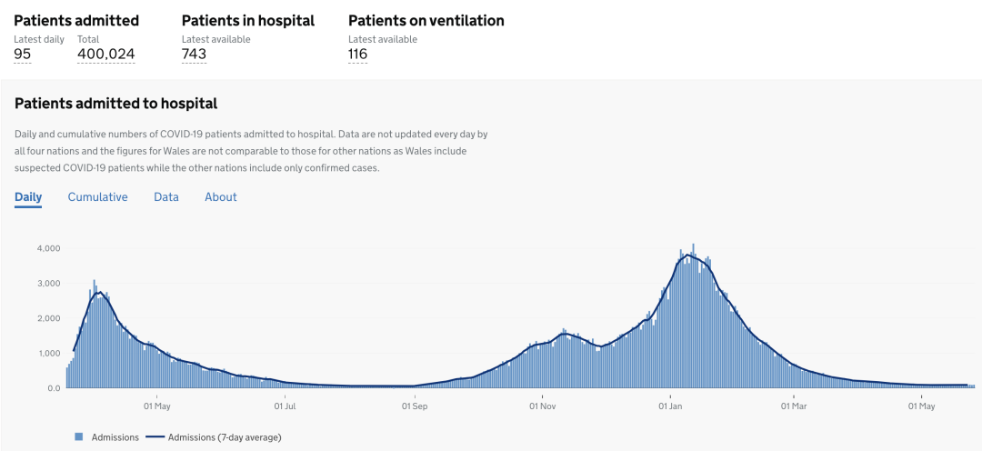 虽然B.1.617.2印度变种的传播速度令人担忧,但数据表明,目前疫苗推广计划对市民提供了足够的保护——到目前为止,住院人数和死亡人数没有因为变种的传播而出现急剧飙升,保持在最低水平。