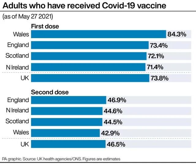 英国全境截至今日,已接种第1剂疫苗共39,259,168人(+183,526);已接种第2剂疫苗共25,332,851人(+418,848)。