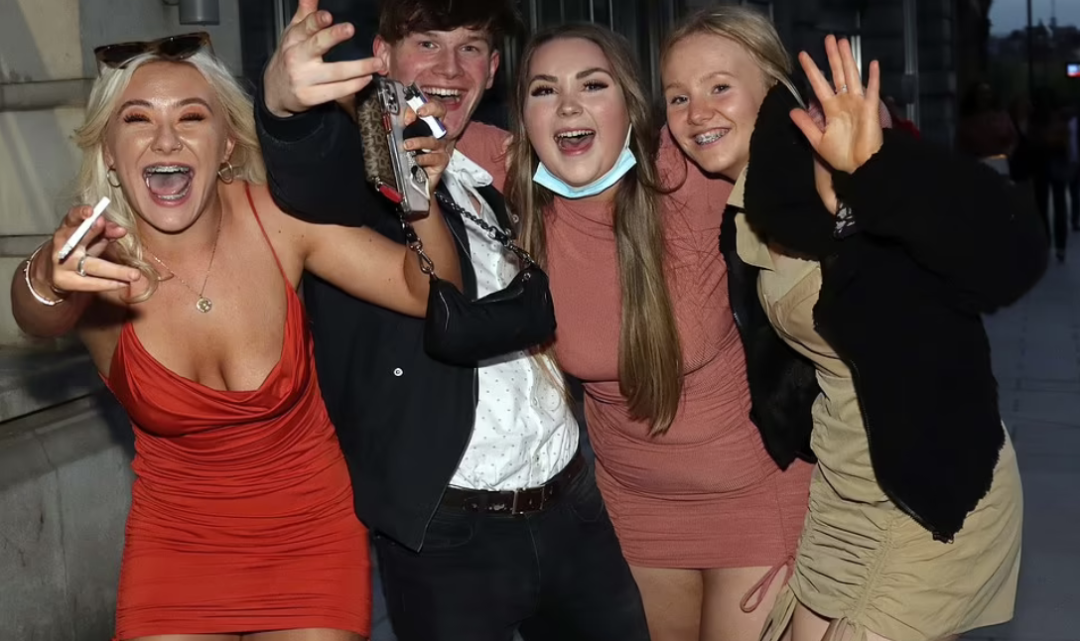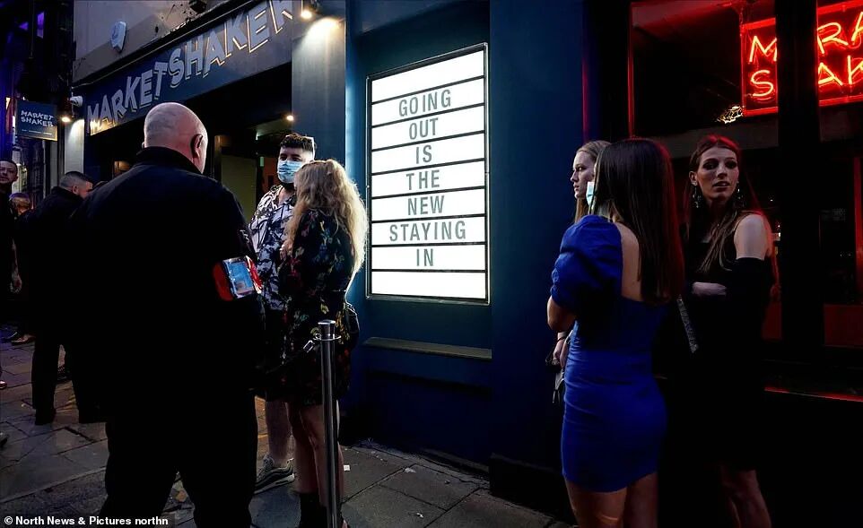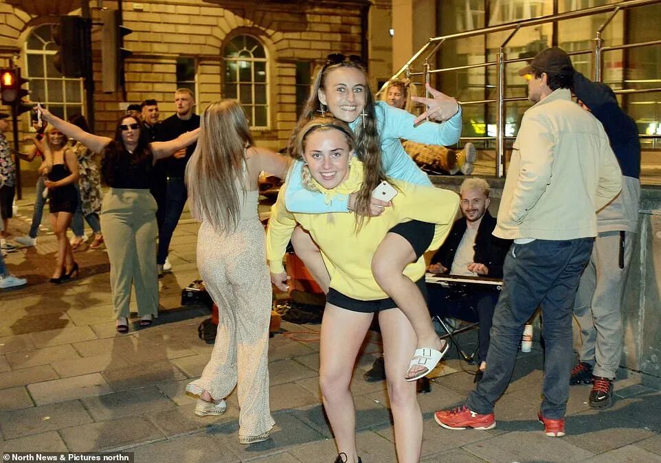 而在英国各大城市,利兹、伯明翰、纽卡斯尔等市中心,年轻人纷纷开启了狂欢模式!酒吧和街道上都能看到他们欢快的身影~甚至还需要排队才能进场!
