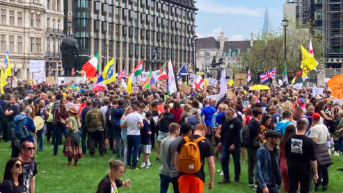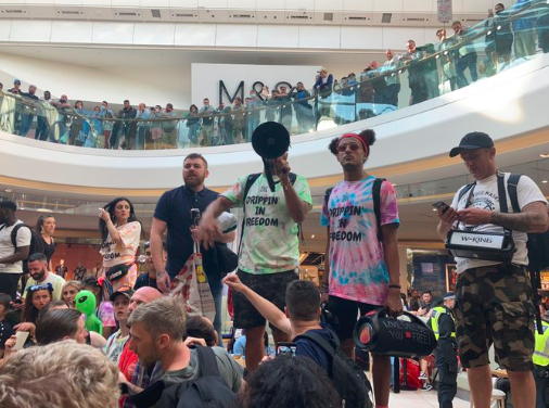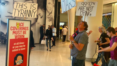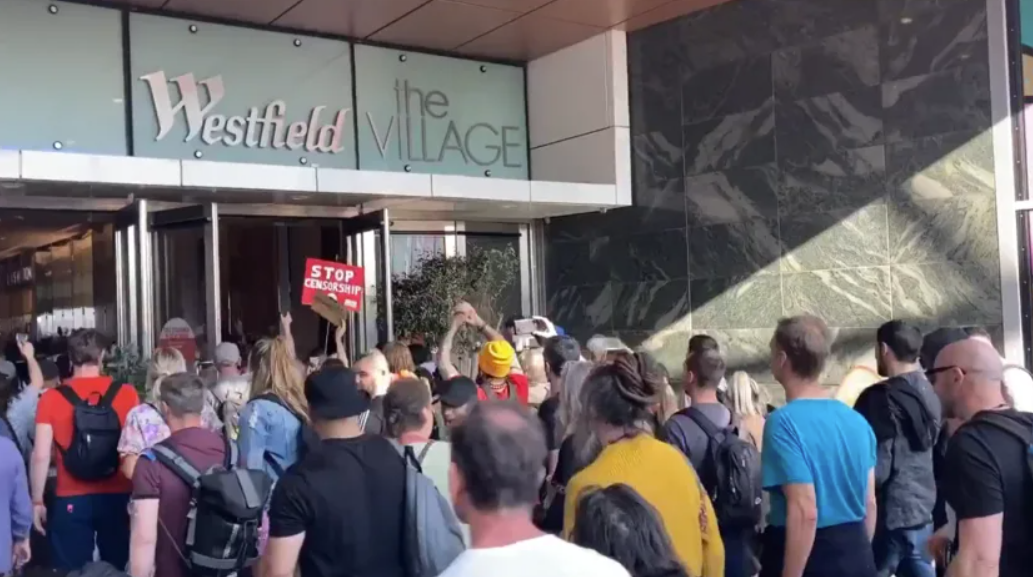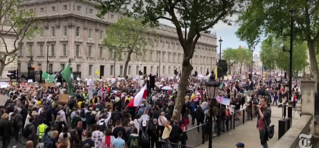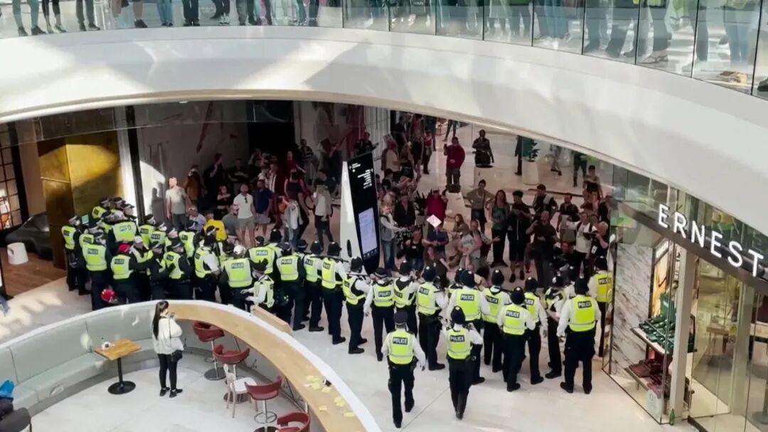 发布的视频显示,周六(5月29日)下午,尽管警方最初试图封锁住入口,但反对封锁、接种疫苗和疫苗护照的抗议示威者依然涌入了伦敦的Westfield购物中心。