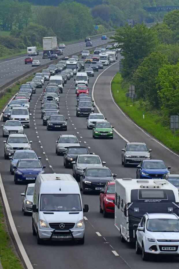 私家车出行导致英国M5公路的部分路段从今天(5月30日)早上开始就处于停顿状态!各地的停车场和公路也都是“车满为患”。