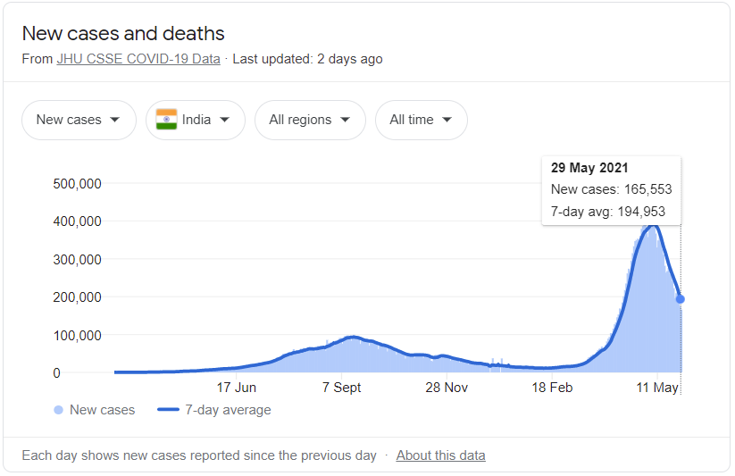 世界的累计确诊人数截止5月30日17:00超过1亿7,089万例(+440k),死亡超过355.3万例(+10k)。