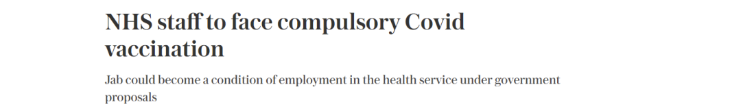 同时,由于政府准备推进强制医院护理工作人员接种疫苗的计划,英国的政府官员认为应该修改法律,NHS工作人员将被依法要求强制接种新冠疫苗。